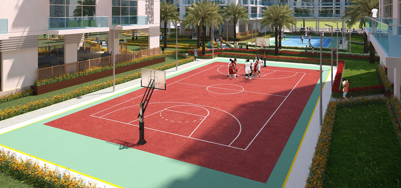 Shoot hoops with city views on our outdoor basketball court